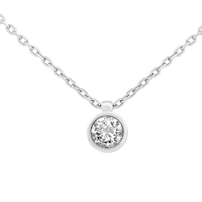0.13 cts. Gargantilla Oro Blanco 18 kts. 1 diamante talla brillante de 3.25 mm. Calidad H-VS/SI. Motivo 4.20 mm de ancho. Cadena Forzada de 0.25 a 39-42 cm. de largo