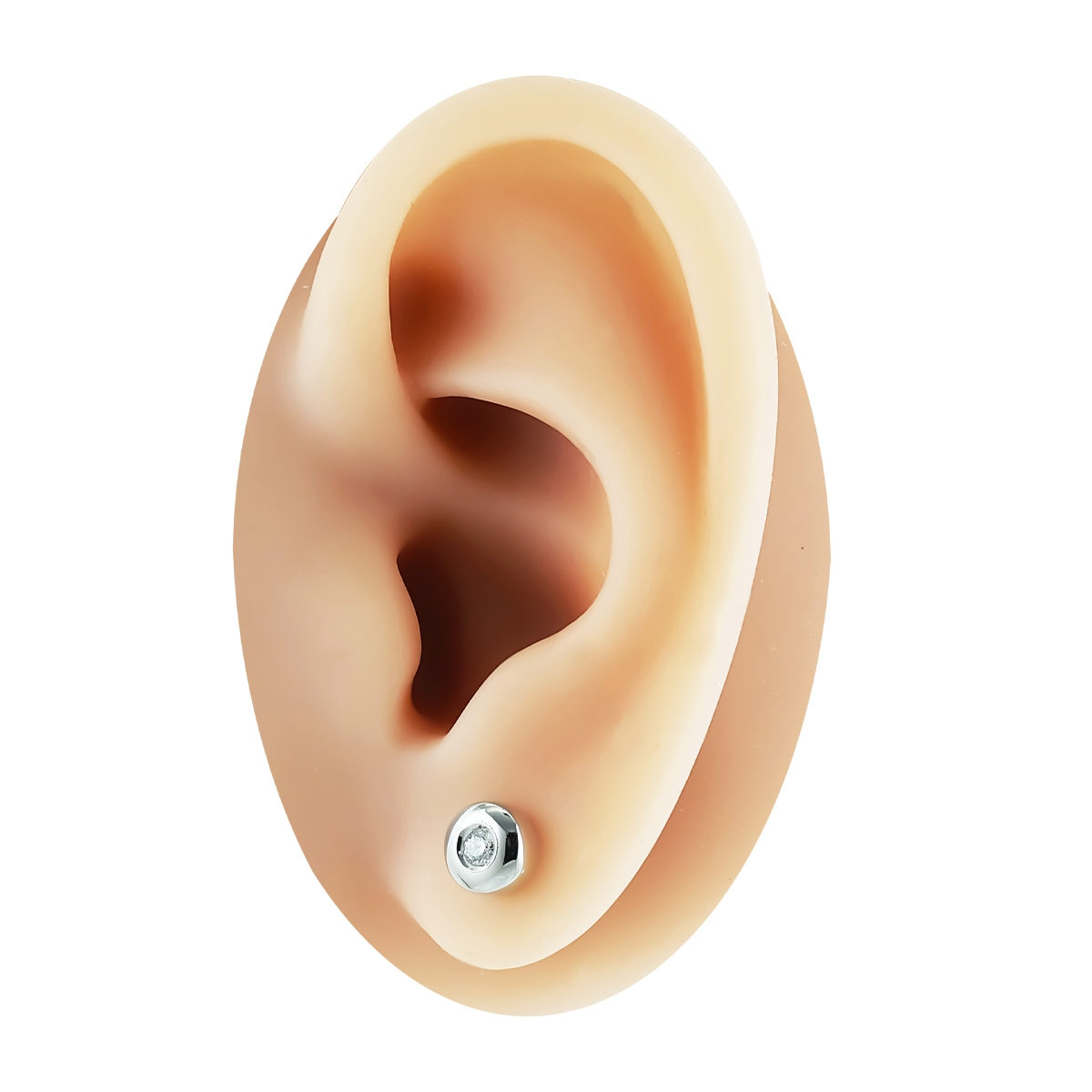 0.12 cts. Pendientes Oro blanco 18 kts. 2 diamantes talla brillante de 2.50mm. Calidad H-VS/SI. Motivo 6mm